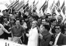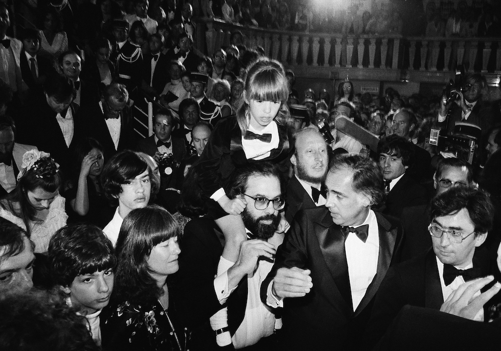 Francis Ford Coppola con in spalle la figlia Sofia dopo la prima di Apocalypse Now al Festival di Cannes, 19 maggio 1979 (AP Photo/Levy)