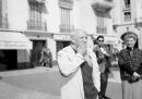 Michelangelo Antonioni mostra a Monica Vitti il premio per L’avventura, 1960 (AP Photo/Weherle)