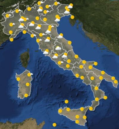 Secondo le previsioni meteo per domani, venerdì 20 maggio, sarà una giornata prevalentemente serena o poco nuvolosa. Al mattino ci saranno un po’ di nuvole in Emilia-Romagna, in Toscana, in Umbria e nel Lazio settentrionale. Nella notte il cielo sarà coperto nel basso Piemonte, nella bassa Lombardia, nel Veneto occidentale e in Trentino-Alto Adige, ma non sono previste piogge.