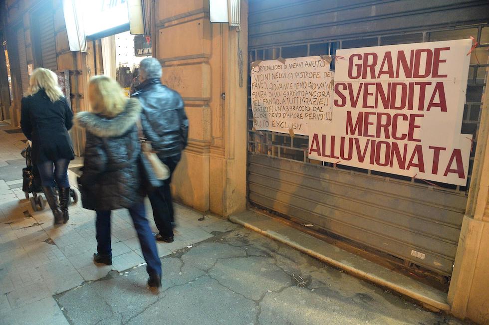 Svendita della merce alluvionata dopo l’alluvione del 2014 (ANSA/LUCA ZENNARO)