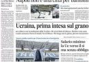 Ci sono notizie diverse in apertura sui giornali di oggi: molti titolano sul primo accordo che sembra sia stato raggiunto fra Turchia, Russia e Ucraina per far partire i raccolti di grano bloccati nei porti ucraini per la guerra, altri si occupano della direttiva europea sul salario minimo e delle tasse sugli stipendi in Italia. Il Corriere della Sera titola invece sulla decisione del governo italiano di convocare l’ambasciatore russo Razov dopo le sue accuse all’Italia, il Giornale apre sulle violenze del 2 giugno a Peschiera del Garda, mentre il Fatto e Libero si occupano delle polemiche sulle presenze di ospiti filorussi nelle trasmissioni televisive italiane.