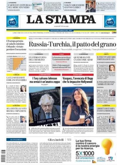La mediazione della Turchia sul grano ucraino, il voto dei conservatori su Boris Johnson, e le violenze di Peschiera del Garda