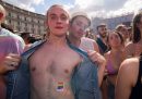 Bandiere arcobaleno, parrucche, lustrini e la cantante Elodie, che ha fatto da madrina