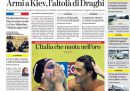 Le comunicazioni di oggi del presidente del Consiglio Draghi al Senato sull’invio di armi all’Ucraina e le diverse posizioni fra i partiti della maggioranza di governo, con il Movimento 5 Stelle che è diviso sulla richiesta di bloccarne l’invio, sono la notizia di apertura sulla maggior parte dei giornali. Qualche giornale titola invece sull’allarme in molte regioni per la siccità e sulle ipotesi di razionamento dell’acqua per le attività non essenziali, mentre i giornali sportivi rubano un po’ di spazio alle notizie sul calciomercato per festeggiare le vittorie di Ceccon, Pilato e Ruggiero e Minisini ai Mondiali di nuoto di Budapest.