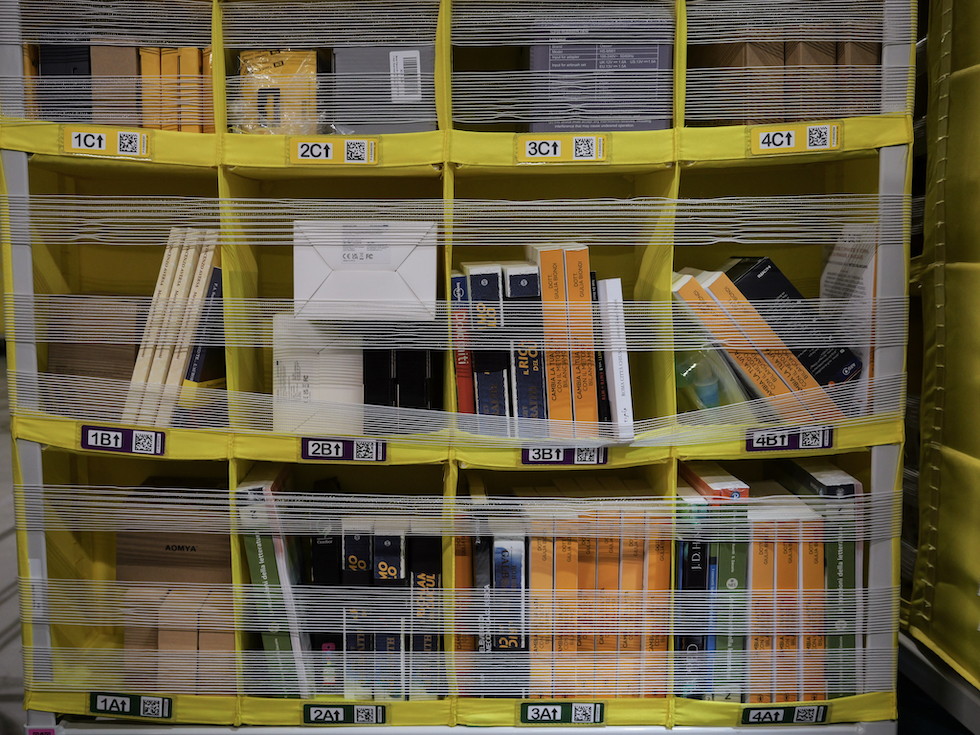 Nel 2021 il 45 per cento dei libri di varia (cioè non scolastici) acquistati in Italia sono stati venduti da librerie online secondo i dati dell’Associazione italiana editori, e nei primi quattro mesi di quest’anno la quota è stata abbastanza simile. Non si sa con esattezza quanti libri comprati su internet passino attraverso le librerie online, ma è noto che in grandissima parte siano spediti dal sito di e-commerce Amazon. Per scoprire che percorso facciano molti dei libri che non sono scelti da scaffali fisici, in librerie in cui si entra dalla porta, ma dalle vetrine digitali, si può dunque seguirne uno attraverso un magazzino di Amazon.