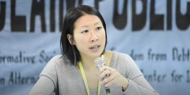 Kishimoto è un’attivista ambientalista e ha vissuto in Giappone fino a 25 anni; si è trasferita prima nei Paesi Bassi e poi a Leuven, dove attualmente vive con il marito e due figli. Lavora come coordinatrice di progetti al Transnational Institute di Amsterdam, un’organizzazione non profit dove si occupa principalmente di alternative alla privatizzazione dell’acqua e di altri servizi pubblici.