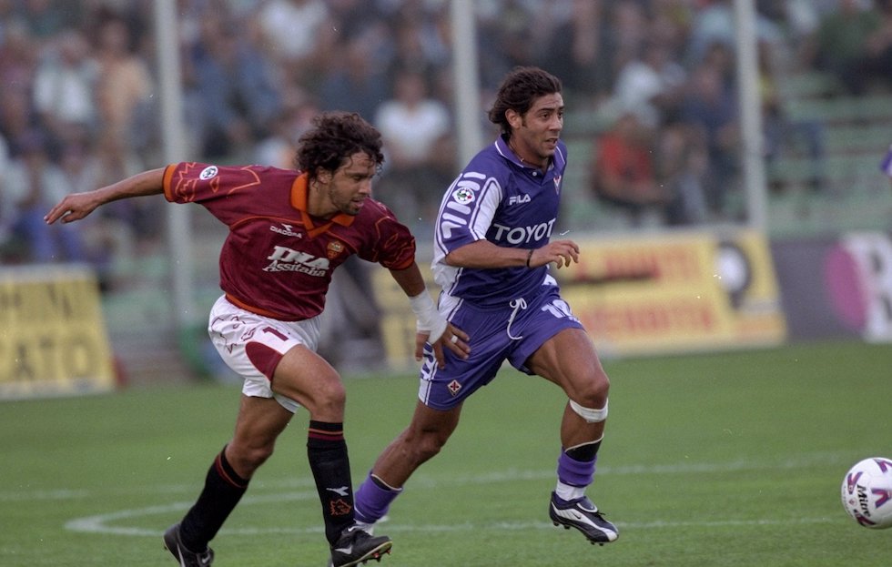 Tommasi e Rui Costa in Fiorentina-Roma (Claudio Villa/LaPresse)