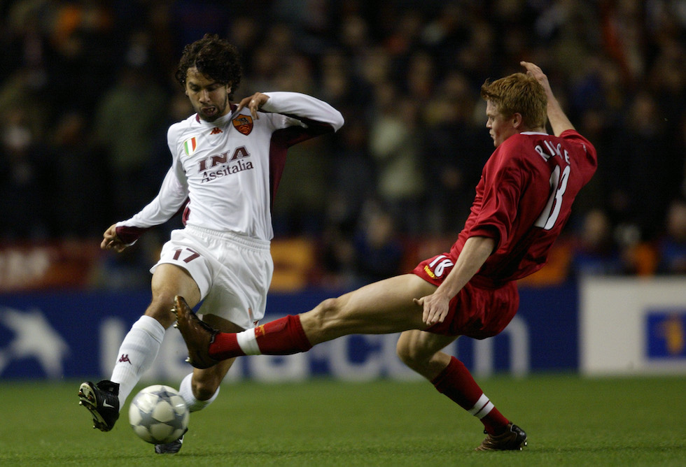 Damiano Tommasi e John Arne Riise in Liverpool-Roma (GaryM.Prior/Getty Images)
