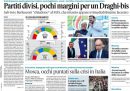 Tutti i giornali di oggi aprono sulla situazione politica italiana, nell’attesa delle comunicazioni del presidente del Consiglio Draghi in Parlamento previste per mercoledì, dopo le sue dimissioni respinte dal presidente della Repubblica Mattarella l’altro ieri. I titoli sottolineano le divisioni nel Movimento 5 Stelle, con le voci su posizioni diverse nel partito sulle dimissioni dei ministri dal governo, le preoccupazioni di Unione Europea e Stati Uniti per la crisi di governo, l’opposizione di Lega e Forza Italia a un nuovo governo che comprenda ancora il Movimento 5 Stelle, e le ipotesi sulle intenzioni di Draghi, che secondo i giornali sarebbe deciso a dimettersi.