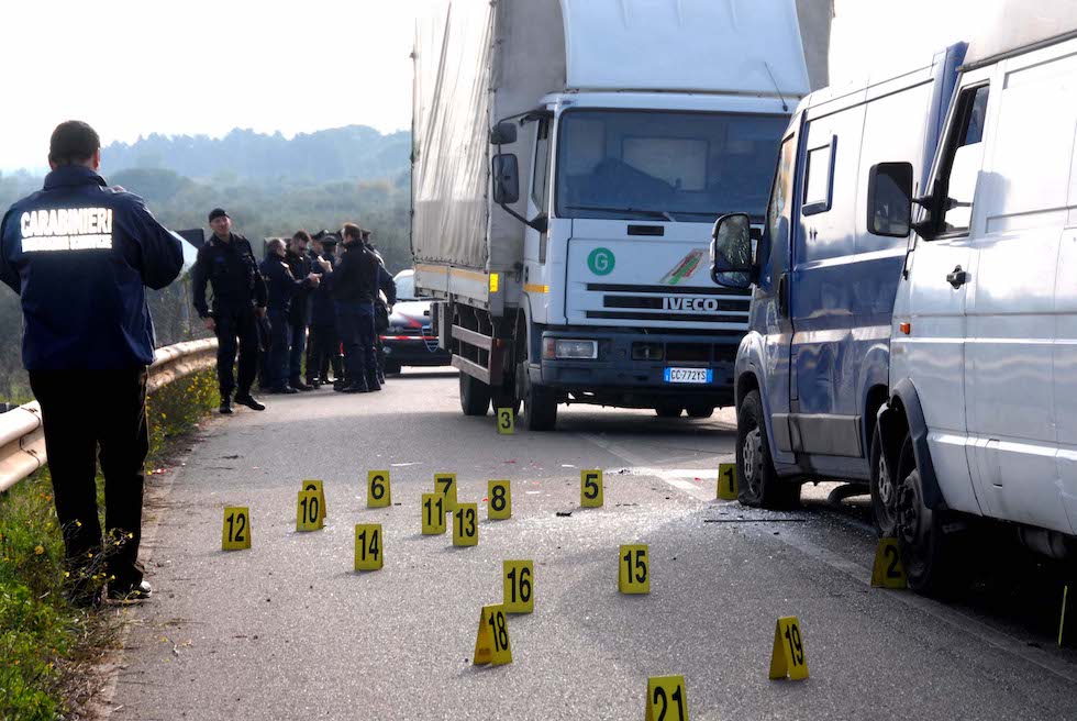 Prima però, scesi dalle auto, hanno bloccato una macchina e un tir. Hanno fatto scendere i guidatori e hanno messo di traverso i mezzi, a cui hanno dato fuoco bloccando le carreggiate in entrambi i sensi di marcia. I carabinieri hanno poi scoperto che, poco lontano dal luogo dell’assalto, era stata rimossa con un escavatore parte del guardrail: era stata così creata una via di fuga verso la campagna di Canne della Battaglia.