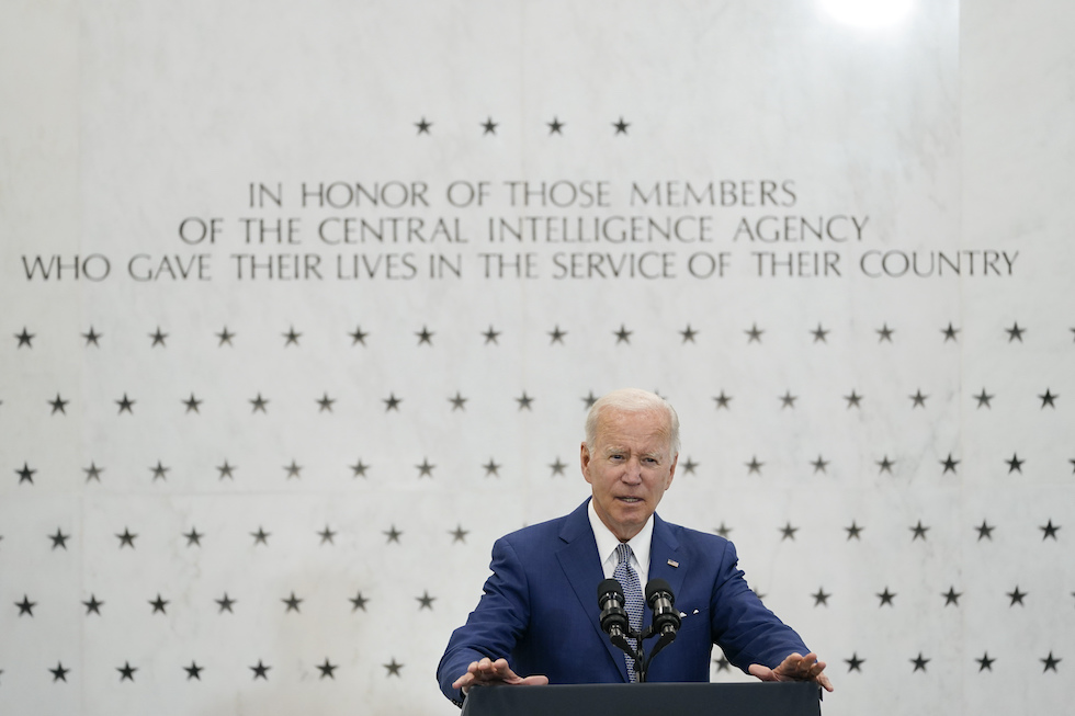 Il presidente statunitense Joe Biden parla alla sede della CIA (AP Photo/Susan Walsh)
