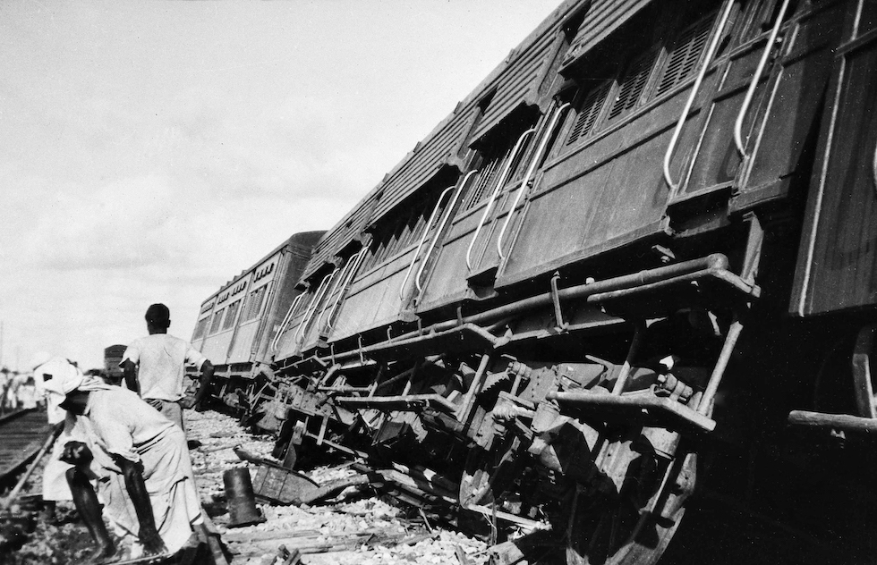 Un treno indiano fatto deragliare in un attacco musulmano nel 1947 (AP Photo)