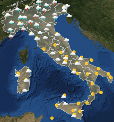 Secondo le previsioni meteo domani, giovedì 18 agosto, ci sarà brutto tempo al Nord e in parte del Centro, mentre sarà generalmente soleggiato al Sud. Al Nord ci saranno temporali in diverse regioni: nella prima parte della giornata in Liguria, Lombardia, Piemonte e Valle d’Aosta, e tra il pomeriggio e la sera anche in Veneto (ma il tempo migliorerà leggermente su Piemonte e Liguria). Al Centro ci saranno piogge e temporali in Toscana, soprattutto nelle ore centrali della giornata, e poi in Emilia-Romagna, in Umbria e nelle Marche. In serata pioverà anche nel Lazio e nel nord della Sardegna. Al Sud sarà sereno, con qualche nuvola, in serata, nel nord della Sicilia, in Molise e in Campania.