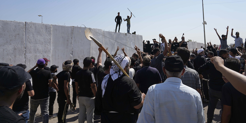 Lunedì mattina a Baghdad centinaia di sostenitori del potente religioso sciita Muqtada al Sadr, al centro delle cronache politiche irachene ormai da molti mesi, hanno assaltato un palazzo governativo nella Zona verde della capitale, cioè quell’area della città militarmente protetta e che ospita vari edifici diplomatici e del governo. All’interno di quella zona i manifestanti si sono poi scontrati con le forze di sicurezza, che hanno sparato contro di loro: almeno 12 persone sono morte, secondo il New York Times e l’agenzia di stampa AFP, e più di cento sarebbero state ferite.