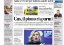 Quasi tutti i giornali di oggi titolano in apertura sul piano nazionale di contenimento dei consumi di gas naturale, presentato ieri dal ministro della Transizione ecologica Cingolani, che prevede una riduzione dei consumi compresa fra il 10 e il 15% per quest’inverno per contrastare gli effetti dell’aumento del prezzo del gas. Repubblica apre invece sull’intervento in una riunione con i candidati del segretario del Partito Democratico Letta, preoccupato per un eventuale successo della destra che le faccia raggiungere i due terzi dei seggi in Parlamento, mentre Domani si occupa delle regole per la riapertura delle scuole, e i giornali sportivi commentano i risultati della prima giornata di Champions League, con la sconfitta della Juventus contro il Paris Saint-Germain e il pareggio fra Milan e Salisburgo.