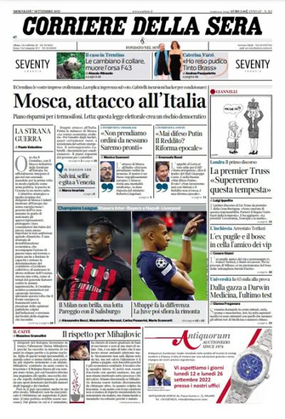 Le prime pagine di mercoledì 7 settembre 2022