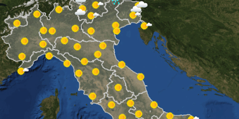 Secondo le previsioni meteo per domani, domenica 18 settembre, sarà una giornata di bel tempo in quasi tutte le regioni italiane. Al mattino è previsto sole ovunque ad eccezione del nord-est, dove sono attese nuvole e pioggia. Nel pomeriggio la situazione non cambierà, con sole in tutte le regioni e qualche nuvole sempre in Friuli Venezia Giulia, in Sardegna e in Sicilia. Alla sera si prevede qualche nuvola in pianura padana, soprattutto in Emilia-Romagna. Cielo coperto anche nel Lazio, in Campania, in Sicilia e in Sardegna, ma senza precipitazioni.