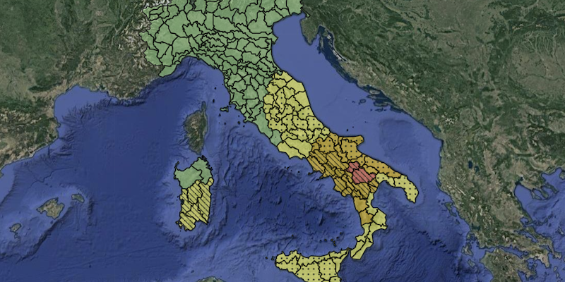 La Protezione Civile ha diramato un’allerta rossa per lunedì 26 settembre in Basilicata a causa del maltempo, e un’allerta arancione per la Campania, il Molise, buona parte della Puglia e la Calabria settentrionale. Già oggi in gran parte delle regioni del Sud ci sono o ci sono state forti piogge, specialmente in Campania, per cui era stata diramata l’allerta arancione.