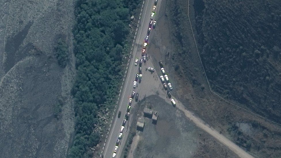 Traffico al confine tra Russia e Georgia, 25 settembre 2022 (BBC News)