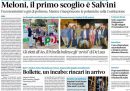 I titoli di apertura dei giornali di oggi seguono la situazione politica dopo le elezioni di domenica scorsa: ieri c’è stato l’incontro fra i leader di Fratelli d’Italia Meloni e della Lega Salvini, nel quale secondo alcuni giornali Salvini avrebbe insistito con la richiesta per sé del ministero dell’Interno nel prossimo governo, e si fanno ipotesi sulle possibili modifiche al reddito di cittadinanza, mentre la Corte di Cassazione ha rivisto gli elenchi degli eletti, fra i quali c’è di nuovo Umberto Bossi. Il Manifesto apre invece sui dati della Nota di aggiornamento al documento di economia e finanza, con le nuove previsioni sull’andamento dell’economia italiana, mentre Avvenire si occupa delle notizie sulla guerra fra Russia e Ucraina.