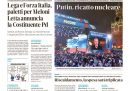 Sono due le notizie principali in apertura sui giornali di oggi: molti titolano sull’annuncio del presidente russo Putin dell’annessione delle regioni occupate dell’Ucraina dopo i referendum farsa organizzati in quei territori e sulla richiesta di adesione alla NATO presentata dall’Ucraina, altri si occupano dei prezzi dell’energia e dell’ulteriore rinvio di un accordo nell’Unione Europea sul tetto al prezzo di acquisto del gas, richiesto da diversi paesi, per l’opposizione della Germania. Domani apre invece sulla lettera agli iscritti del segretario del PD Enrico Letta sul cammino del partito in vista del prossimo congresso, mentre i giornali sportivi presentano il campionato di Serie A che riprende oggi dopo la pausa per le nazionali con tre partite fra cui Inter-Roma.