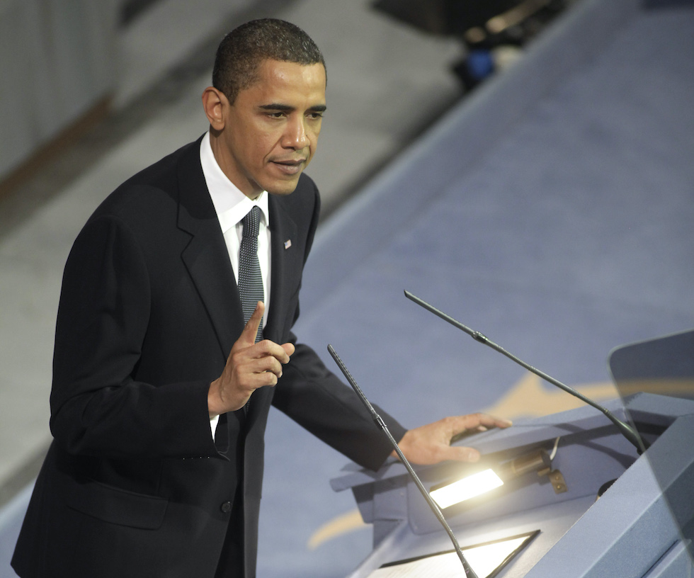 Il presidente americano Barack Obama nella cerimonia di premiazione del 2009 (AP Photo/Odd Andersen)