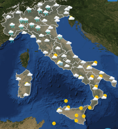 Secondo le previsioni meteo per domani, domenica 9 ottobre, nella prima parte della giornata l’Italia sarà divisa tra il maltempo al Nord e sole al Sud. Al mattino è prevista pioggia in tutte le regioni settentrionali, nuvoloso nell’Italia centrale e sole nelle regioni meridionali, soprattutto in Sicilia. Nel pomeriggio la pioggia si sposterà gradualmente verso Sud. Alla sera sono previsti temporali nel Lazio e nella Sicilia occidentale, mentre il tempo sarà variabile in Puglia, Basilicata e Calabria. Nella notte pioverà su quasi tutta l’Italia.