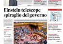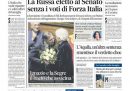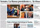 L’apertura su tutti i giornali di oggi è dedicata all’elezione del senatore di Fratelli d’Italia Ignazio La Russa a presidente del Senato, ottenuta nonostante la decisione della maggior parte del gruppo di Forza Italia di non partecipare alla votazione e grazie ai voti di una quindicina di senatori dell’opposizione. Su molte prime pagine la notizia è accompagnata dalla foto del saluto fra il neo eletto presidente e la senatrice a vita Liliana Segre, che ha presieduto la prima seduta, mentre nei titoli si fanno ipotesi anche sulla presidenza della Camera, per la quale oggi la Lega dovrebbe candidare Lorenzo Fontana.