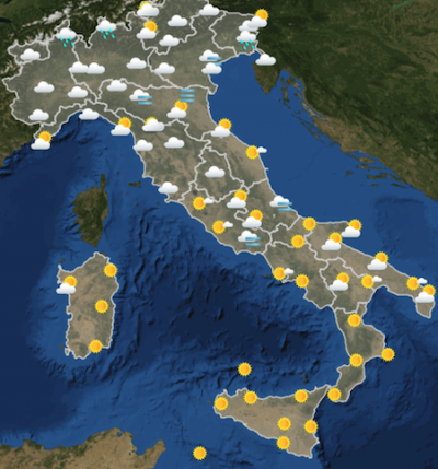 Secondo le previsioni meteo domani, lunedì 24 ottobre, sarà una giornata dal tempo piuttosto variabile, tendenzialmente nuvolosa e piovosa al Nord e più serena al Sud. Nel Nord sono previste piogge in Liguria, Piemonte, Valle d’Aosta e Lombardia, con temporali in Liguria anche nel pomeriggio. Potrebbe piovere anche in Trentino-Alto Adige, Veneto, Friuli Venezia Giulia e sull’appennino emiliano-romagnolo. Il tempo dovrebbe migliorare in serata, ma non in Lombardia e Piemonte. Nel Centro sarà tendenzialmente nuvoloso, con qualche pioggia scarsa prevista solo in Toscana. Al Sud sarà tendenzialmente sereno, salvo qualche nuvolosità prevista in mattinata su Campania e Puglia.