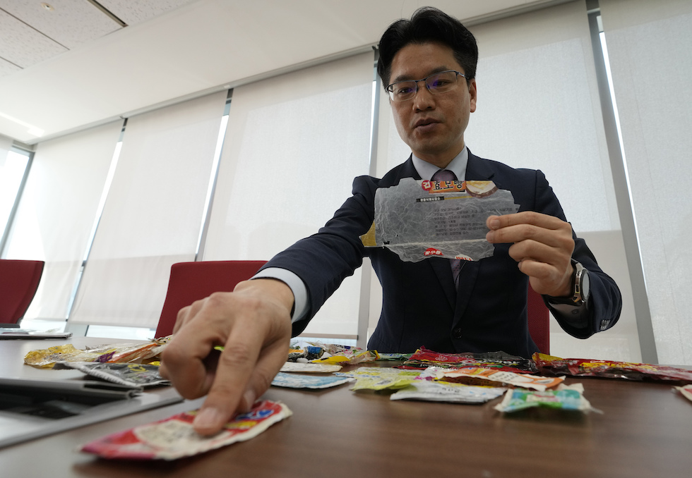 È il professore Kang Dong-wan, che analizza le confezioni di cibi e prodotti che arrivano sulle spiagge sudcoreane dal mare