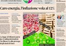 Sono due le notizie principali in apertura sui giornali di oggi: le misure di contenimento per il Covid-19, con la decisione del ministero della Salute di diffondere settimanalmente e non più giornalmente il bollettino sull’andamento dei contagi, la fine dell’obbligo dell’uso delle mascherine negli ospedali e il possibile reintegro del personale sanitario che non si è vaccinato, e i dati diffusi dall’ISTAT sull’inflazione a ottobre, in aumento e pari all’11,9% su base annua. Il Messaggero titola sulle ipotesi di intervento da parte del governo per contrastare gli effetti dell’aumento delle bollette energetiche per famiglie e imprese, Domani si occupa del potenziale conflitto di interessi del ministro della Difesa Crosetto, e i giornali sportivi presentano le partite di Serie A di oggi.