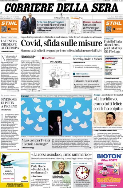 Le modifiche alle misure di contenimento del Covid-19, i dati sull'inflazione a ottobre, Musk acquista Twitter, e l'ora legale