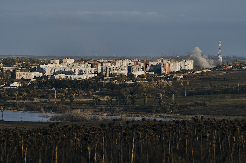Il fumo di un bombardamento d’artiglieria su Bakhmut (AP Photo/LIBKOS)