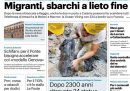 L’apertura sulla maggior parte dei giornali di oggi è dedicata all’accoglienza dei migranti, con la decisione del governo italiano di far scendere tutti dalle due navi bloccate nel porto di Catania e quella della Francia di far sbarcare a Marsiglia i migranti recuperati nel Mediterraneo dalla nave Ocean Viking. Il Messaggero presenta il piano del governo sulle pensioni, il Fatto critica i possibili accordi fra Partito Democratico e Azione-Italia Viva per le commissioni parlamentari e la candidatura alla Regione Lazio, Domani torna sulla vicenda delle violenze di due anni fa nel carcere di Santa Maria Capua Vetere, e i giornali sportivi commentano i risultati degli anticipi di Serie A, con la vittoria del Napoli che porta a 8 i punti di vantaggio sul Milan, che ha pareggiato con la Cremonese.