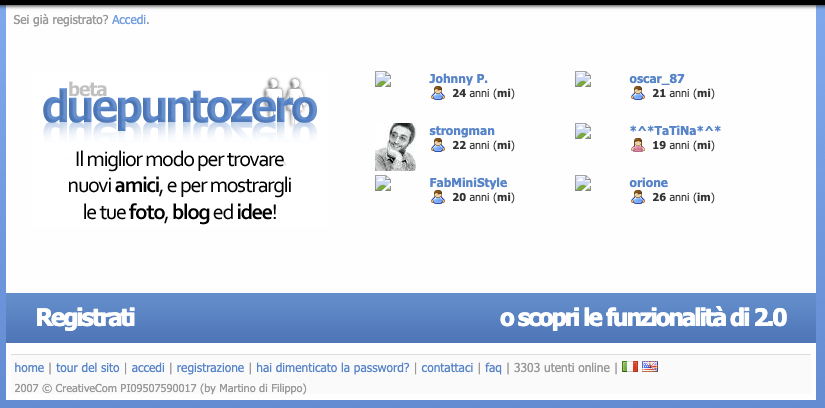 Duepuntozero era un social network che tra il 2004 e il 2009 divenne molto popolare tra i giovani italiani, soprattutto in Lombardia. Per molti versi anticipò Facebook, che negli Stati Uniti nacque nello stesso anno, ma anche Instagram, che sarebbe arrivato solo diversi anni dopo. Prima di essere cancellato per errore e sparire per sempre, arrivò ad avere mezzo milione di utenti e a essere il nono sito più visitato in Italia. L’avevano inventato due ragazzi milanesi, che ai tempi avevano 16 anni, facevano il liceo a Milano e non ci guadagnarono mai niente.