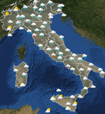 Secondo le previsioni meteo per domani, mercoledì 16 novembre, il tempo sarà molto nuvoloso con piogge diffuse un po’ dappertutto, soprattutto nella prima parte della giornata. Al mattino pioverà praticamente ovunque al Nord e al Centro, con l’esclusione della Lombardia e della Liguria: pioverò anche al Sud, in Campania e in Basilicata. Al pomeriggio sono previste piogge nel Veneto settentrionale, in Romagna, in Toscana, nella Sardegna meridionale e nel Gargano, e ci saranno temporali in Umbria, in Campania e nel Lazio. Alla sera ci sarà un po’ di nebbia in Pianura Padana e pioverà nel Lazio. Nella notte sono previste ancora piogge nelle Marche, in Calabria e in Sicilia.