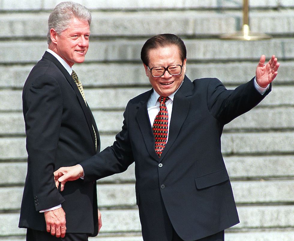 Jiang Zemin e l’allora presidente americano Bill Clinton a Pechino nel 1998 (ANSA /Stephen SHAVER)