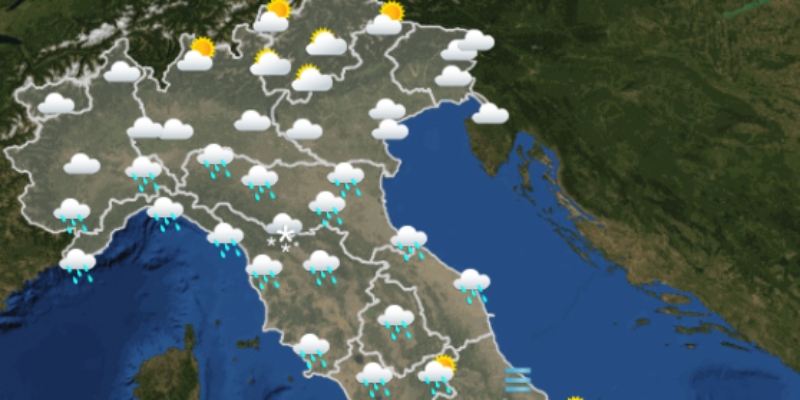 Secondo le previsioni meteo per domani, sabato 3 dicembre, sarà una giornata dal tempo molto nuvoloso con piogge diffuse un po’ dappertutto. Al mattino pioverà nel basso Piemonte, in Liguria, in Emilia-Romagna, in Toscana, in Umbria, nelle Marche, nel Lazio e in Calabria, e sono previste nevicate sull’Appennino tosco-emiliano. Dal pomeriggio le piogge si estenderanno a quasi tutte le regioni, con esclusione del Trentino-Alto Adige, dell’alta Lombardia e della Campania. Alla sera sono previsti anche temporali alternati a schiarite proprio in Campania e nevicate in Friuli Venezia Giulia. Nella notte ci saranno temporali nella bassa Toscana e nel Lazio.