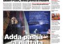 Ci sono molte notizie diverse in apertura sui giornali di oggi: alcuni titolano sulle trattative per cercare di raggiungere una tregua fra Russia e Ucraina tramite un incontro fra i presidenti americano e russo Biden e Putin, altri si occupano dell’aumento delle bollette del gas per il mese di novembre comunicato dall’Autorità per l’energia. La Stampa apre sull’attentato incendiario a Atene contro l’automobile della prima consigliera dell’ambasciata italiana Susanna Schlein, Repubblica titola sulle osservazioni della Corte dei Conti alle norme su uso del contante e POS contenute nella legge di bilancio, il Sole 24 Ore annuncia la pubblicazione dell’avviso di gara per la realizzazione del termovalorizzatore a Roma, il Manifesto segue la situazione a Ischia, dove ieri sono state evacuate più di mille persone per il maltempo, il Fatto critica le scelte del governo italiano sulla fornitura di armi all’Ucraina, e Libero si occupa del processo Open Arms.