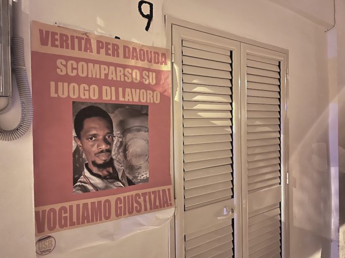 Michele Mililli del sindacato di base USB di Ragusa da tempo lavora nella fascia trasformata per sostenere la lotta dei braccianti. Dice che il caso di Diane è emblematico perché mostra i rischi concreti a cui va incontro ogni migrante che lavora in questo territorio: «Non è un caso che Daouda sia scomparso qui. Solo tramite l’organizzazione sindacale è possibile lottare, fare delle domande e chiedere delle risposte alle istituzioni. Altrimenti non c’è nessuno sul territorio che si occuperebbe di loro. Questi lavoratori sono veramente soli».
