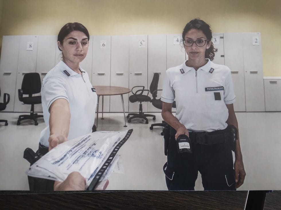 Agenti di polizia penitenziaria del laboratorio centrale Dap ricevono il campione salivare di una persona arrestata