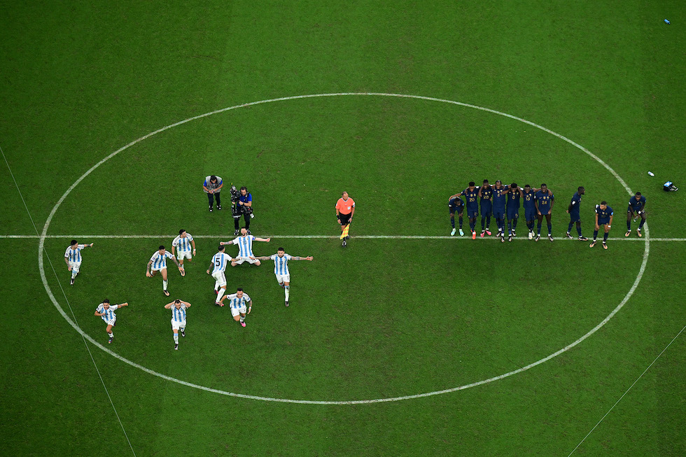 Argentina e Francia a metà campo dopo il rigore decisivo segnato da Gonzalo Montiel (Matthias Hangst/Getty Images)