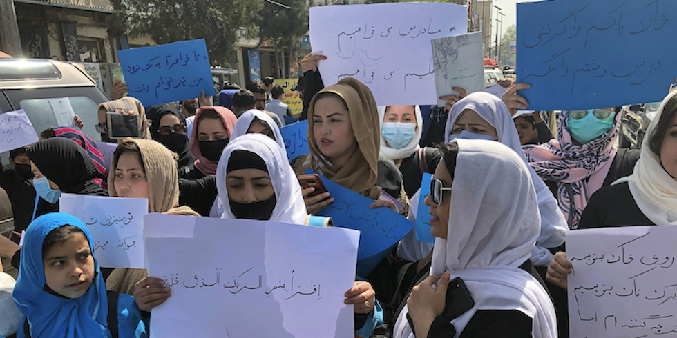 Una protesta organizzata da alcune donne afghane a marzo del 2022, in Afghanistan (AP Photo/Mohammed Shoaib Amin, File)