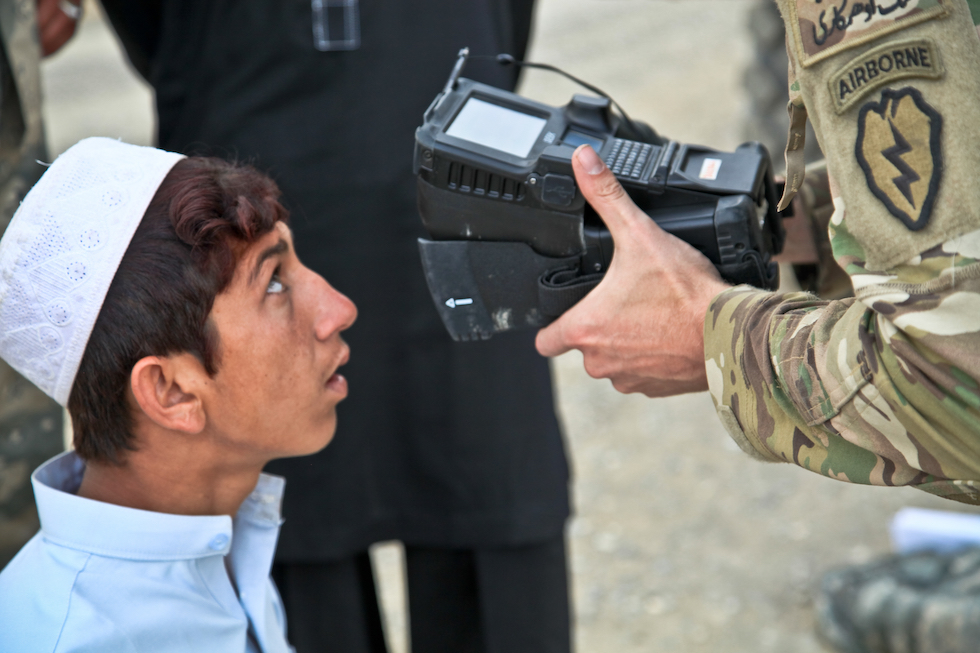 Una scansione dell’iride in Afghanistan nel 2013 (U.S. Army photo / Wikicommons)