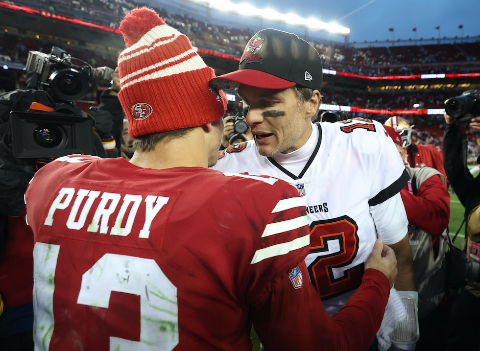 Brock Purdy con Tom Brady (Lachlan Cunningham/Getty Images)