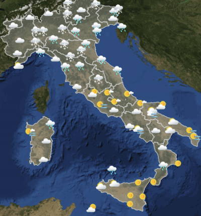 Secondo le previsioni meteo per domani, lunedì 23 gennaio, sarà una giornata poco nuvolosa al Centro e al Sud e perlopiù coperta, con nevicate e piogge diffuse al Nord. Al mattino nevicherà già sopra i 200 metri in Emilia Romagna, Lombardia e Piemonte, mentre nelle regioni alpine è prevista neve dagli 800 metri in su; nel pomeriggio pioverà su tutto il Nord, ma continuerà a nevicare in Trentino-Alto Adige, nel basso Piemonte e nel Friuli Venezia Giulia. Sempre nella prima parte della giornata sono previste nuvole in Sardegna, nel Lazio meridionale, in Umbria e nelle Marche, dove ci saranno nevicate diffuse. Nel resto del Centro e del Sud sarà perlopiù sereno o poco nuvoloso, con qualche pioggia e temporali sparsi sulle aree costiere di Campania, Calabria e Sicilia settentrionale nella prima parte della giornata.