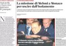 Quasi tutti i giornali di oggi si occupano in apertura dell’assoluzione di Silvio Berlusconi in primo grado nel processo “Ruby ter”, nel quale era accusato di corruzione in atti giudiziari, perché il fatto non sussiste. Fanno eccezione Avvenire e il Manifesto, che titolano sui naufragi di imbarcazioni che trasportavano migranti davanti alle coste della Libia e in Spagna, che hanno provocato oltre 140 morti, la Verità, che segue la vicenda del divieto di vendita di automobili nuove a benzina e diesel a partire dal 2035, Domani, che si occupa dei rapporti fra il governo italiano e l’Unione Europea, e il Tempo, che apre sulla conferma da parte del ministro della Giustizia Nordio del regime carcerario del 41-bis per Alfredo Cospito.