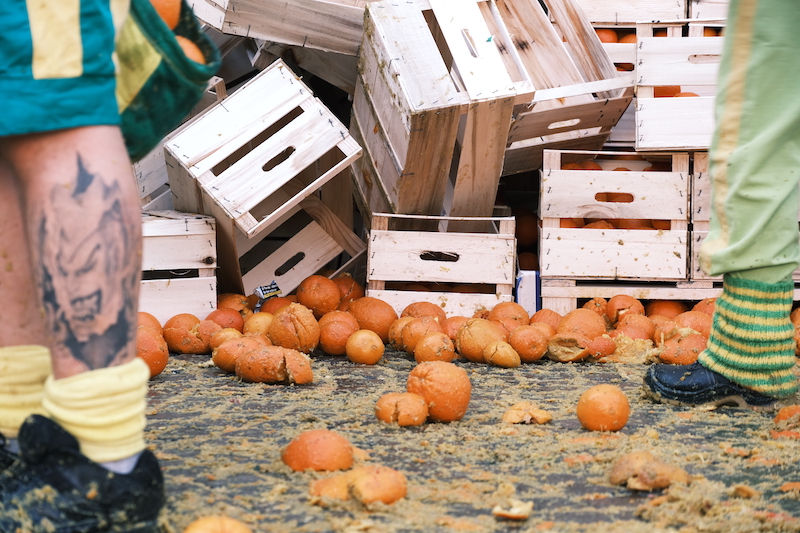 In risposta a chi ha sollevato dubbi in merito al possibile spreco alimentare, Gillardi ha anche spiegato che in qualsiasi caso le arance non sarebbero state destinate al consumo alimentare: si tratta di agrumi di seconda o terza scelta, che sarebbero destinati al macero, con costi di smaltimento a carico dei produttori, oppure a essere venduti a basso costo per la produzione di bevande a base di succo d’arancia. In Calabria il maggiore acquirente è la Coca-Cola Company, che utilizza le arance in particolare per produrre l’aranciata Fanta. Gli organizzatori le hanno pagate 60 centesimi al chilo, più del doppio di quanto avrebbero fatto i produttori di bibite.
