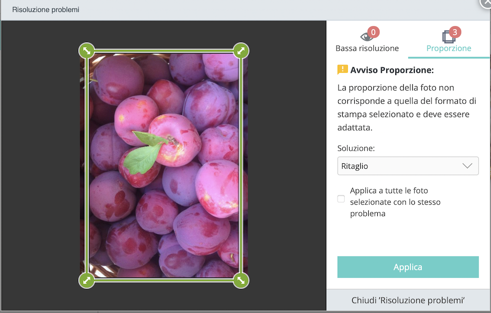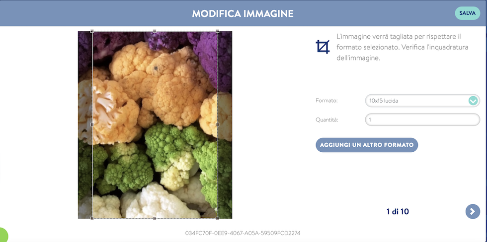 È tra i servizi più semplici e immediati da utilizzare, sia per il modo in cui è costruito il sito sia perché ha un numero limitato di dettagli da selezionare e di opzioni per la modifica delle foto. Per quanto riguarda la stampa delle fotografie, la scelta è tra l’effetto lucido e quello opaco. Si hanno poi sei opzioni per i formati rettangolari (ce ne sono altri per le foto quadrate): 10×15 cm, 12×18 e 13×19, oppure ad altezza 10, 12 o 13 e larghezza variabile, mentre per ordinare stampe di dimensioni più grandi bisogna fare riferimento alla categoria “ingrandimenti”. Una volta che la si carica sul sito, l’immagine viene tagliata automaticamente (per adattarla alle dimensioni di stampa), ma l’operazione può essere fatta anche manualmente cliccando sull’opzione di modifica, come si vede nell’immagine qui sotto. La stampa di dieci foto è costata 2,80 euro.