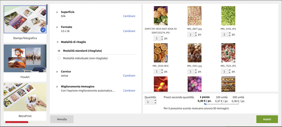È il servizio che presenta più opzioni, al punto che potrebbero sembrare addirittura troppe se quello che desiderate è soltanto stampare semplici foto, mentre potrebbe risultare utile per progetti più elaborati o se vi appassiona il processo di editing in sé.